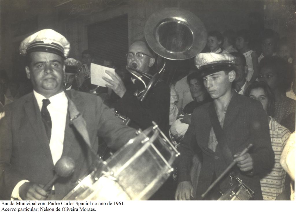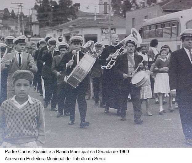 “A banda musical do Taboão da Serra foi fundada em 31/06/1962 pelo padre Carlos Spaniol, que era músico e pároco da igreja Santa Terezinha. Naquela época a Banda não tinha coreto, não tínhamos lugar certo para tocar; então íamos à pracinha 31 de março (atual Praça Nicola Vivilechio). Aos domingos, as moças e os rapazes davam voltas a pé pelo jardim ao lado da fonte luminosa, ao som das marchinhas e dobrados de nossa bandinha, que se espalhava por todo Jardim Maria Rosa, atraindo as famílias.