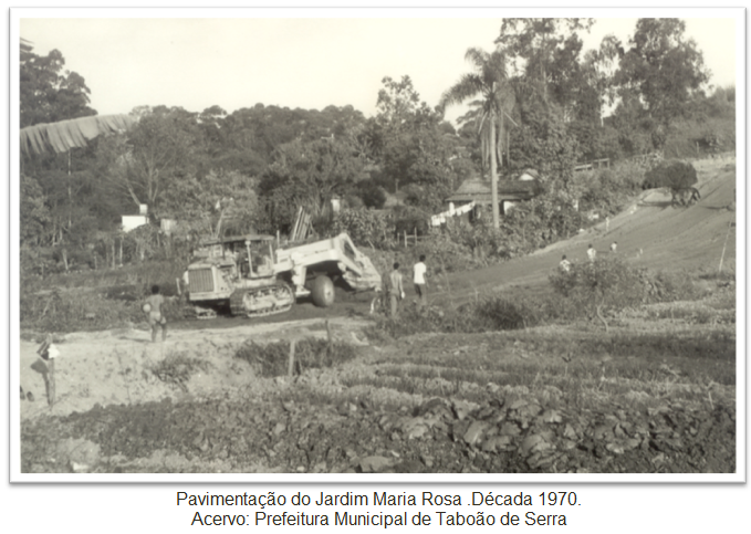 Em 1962, “Próximo ao núcleo de povoamento que deu origem ao município de Taboão, na bifurcação das estradas do Campo Limpo e Regis Bittencourt, os loteamentos já retalham o terreno da margem direita do rio Poá, assim como sobem as encostas das colinas interligadas a estes compartimentos, como é o caso do loteamento Jardim Maria Rosa. “[43]