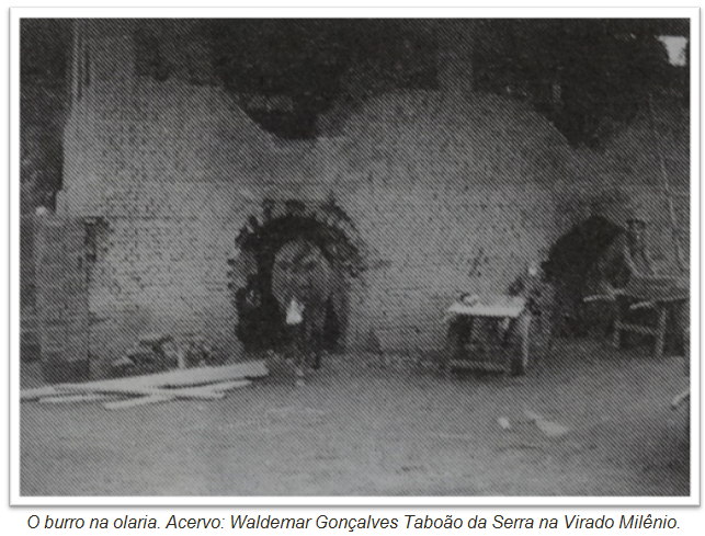 As olarias mais definitivas possuíam fornos de tijolos com paredes bastante grossas e coberturas de telhas. Para amassar o barro, usavam as "pipas", construídas em madeira e movidas a burros que, amarrados, andavam em círculos. (...) Nestas olarias, o ir e vir da lenha, do barro cru ou cozido em tijolos, era realizado pelos carroceiros. (...)