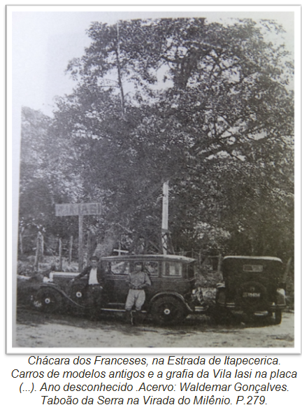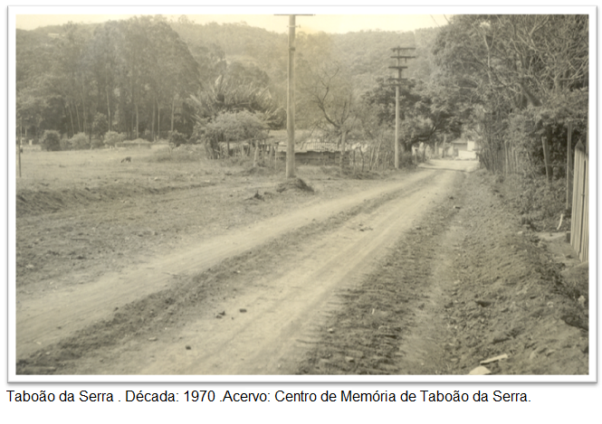 “ Eu nasci no bairro do Campo Limpo em 1911, mas Taboão já existia e -na década de 1920 - era enchente e mato. A Av. Francisco Morato chamava Estrada de Itapecerica e isso durou até o marco de M´ Boy. O largo do Taboão tinha morro e então o caminhão não passava. Era preciso colocar corrente para subir e puxar... Isso quando chovia muito.”[35]
