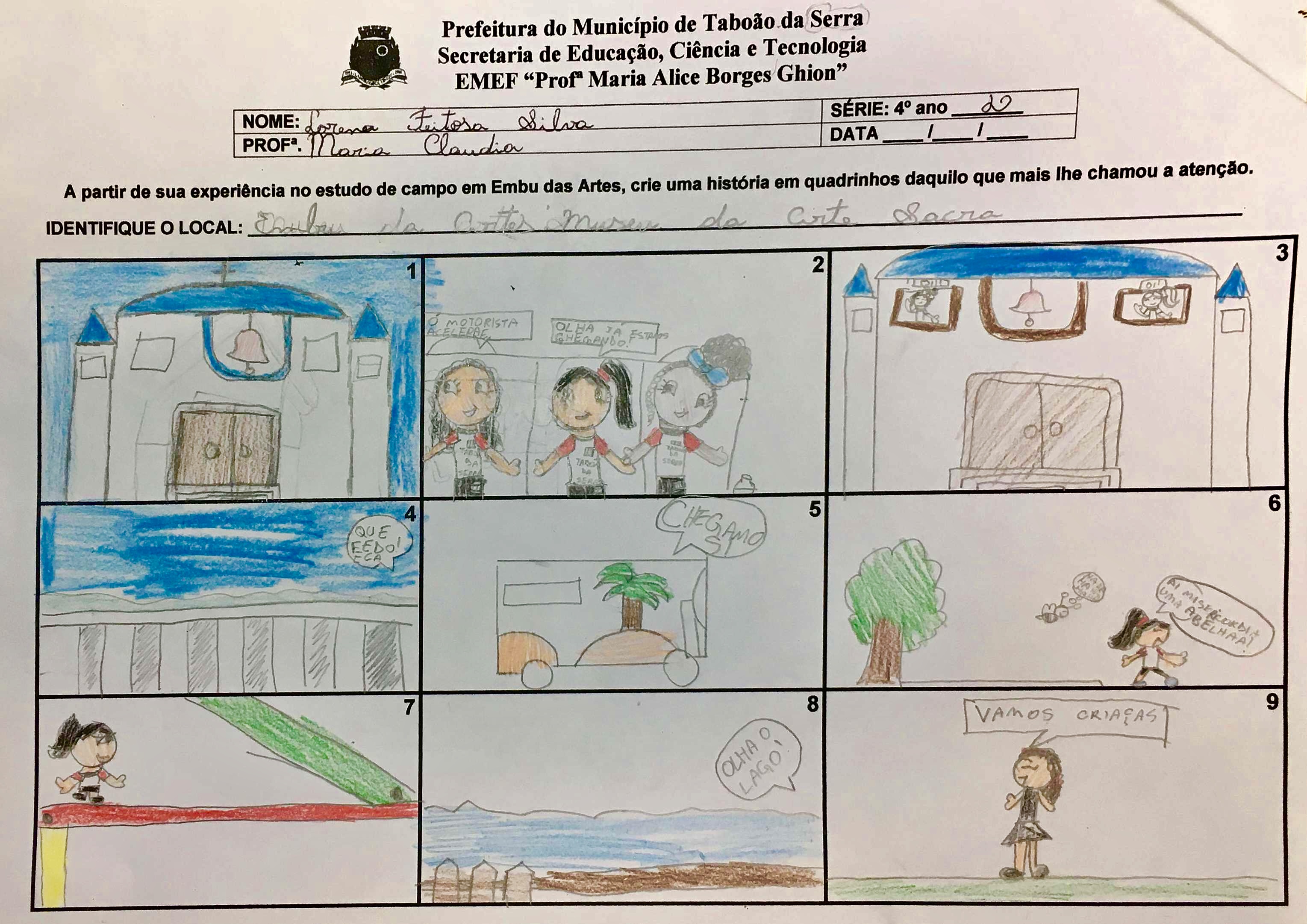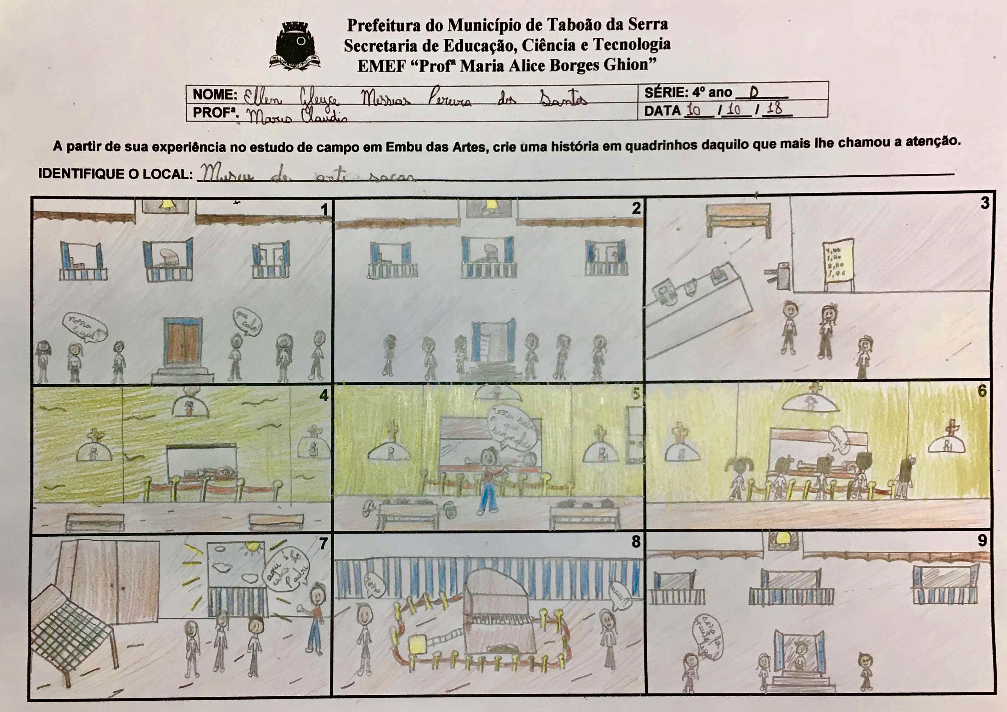 Produto final realizado pela aluna Lorena Feitosa Silva, descrevendo através da produção de quadrinhos, sua experiencia acerca da visitação à cidade de Embu das Artes e em especial a visitação ao Museu de Arte Sacra dos Jesuítas.