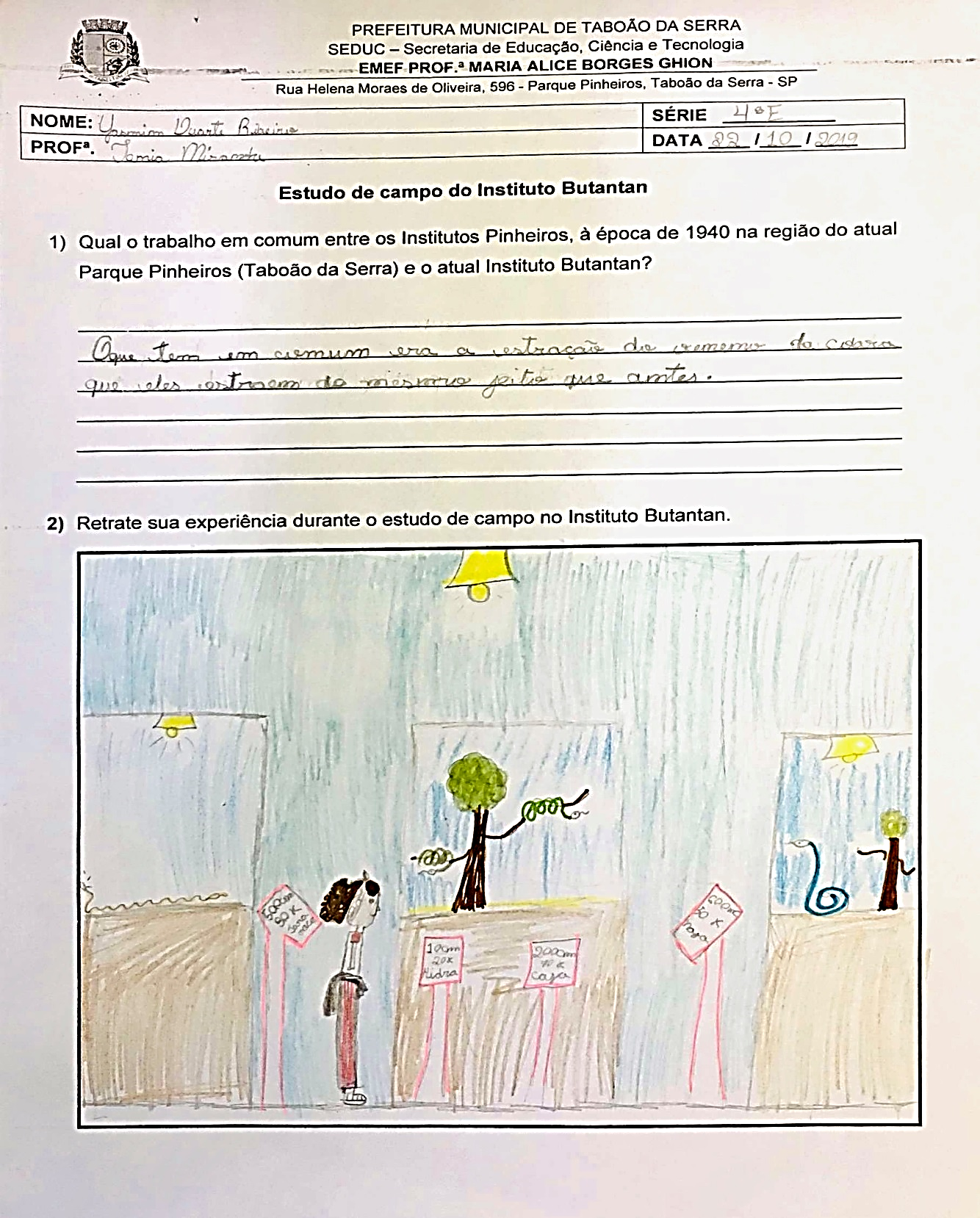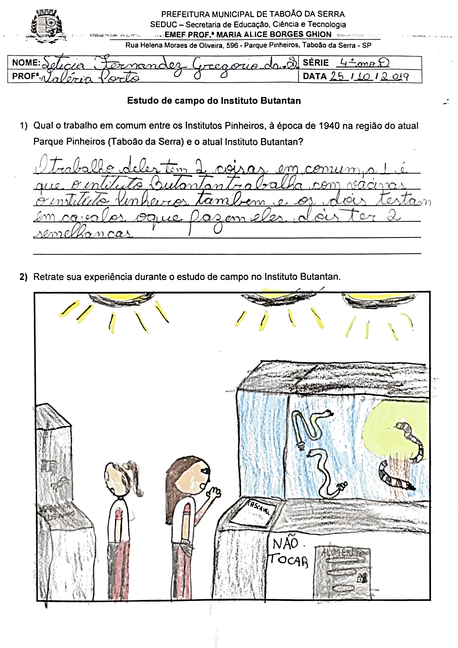 Lya Lammas. Instituto Butantã, 4º ano A, prof.ª. Valéria Porto. EMEF Profª. Maria Alice Borges Ghion. Ano 2019.