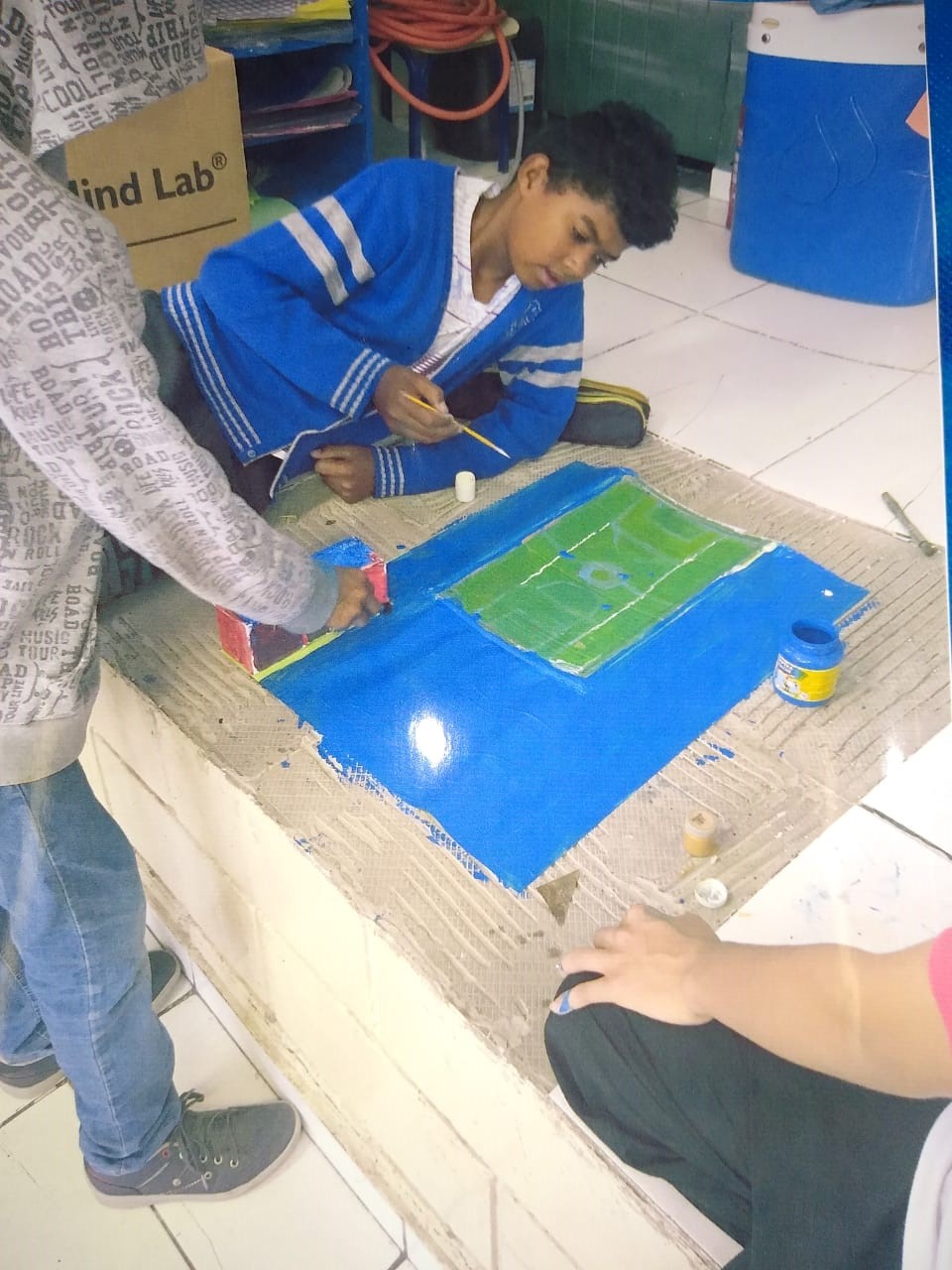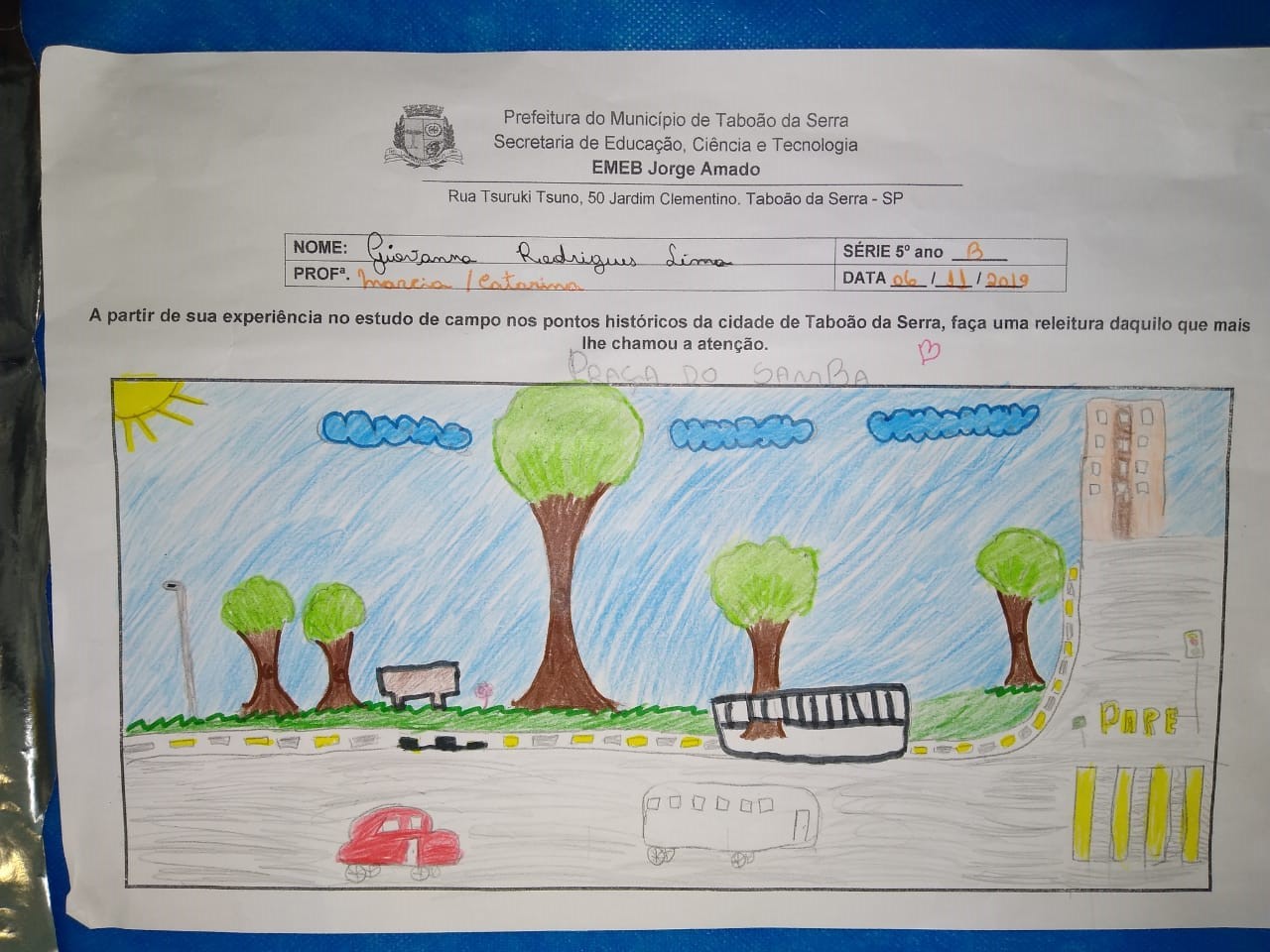 Produto final realizado pela aluna Giovanna Rodrigues Lima. Praça do Samba. EMEB Jorge Amado. Ano 2019. Acervo: Prefeitura Municipal de Taboão da Serra.