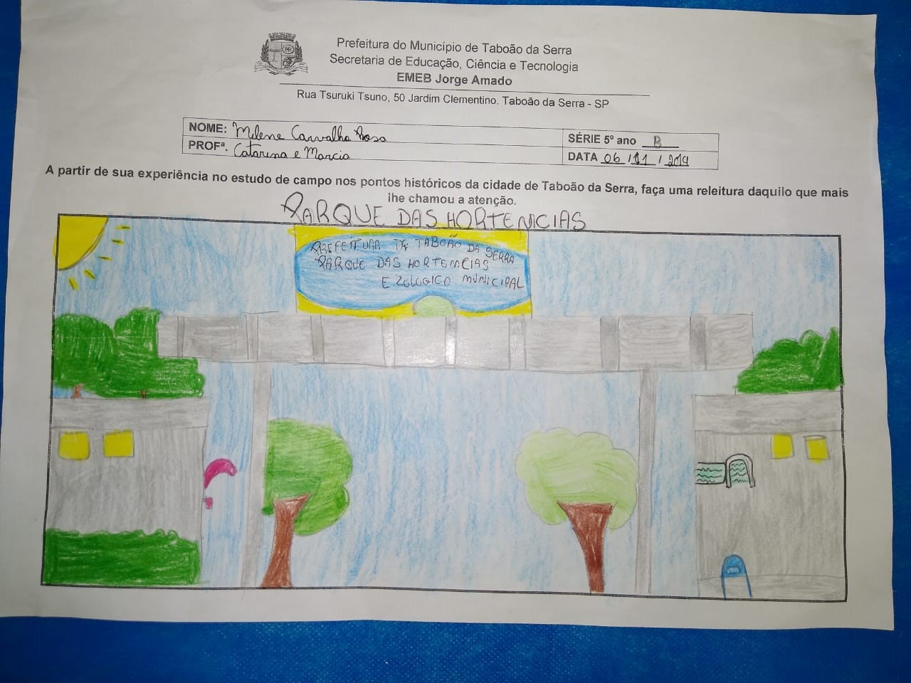 Produto final realizado pela aluna Milene Carvalho Rosa. Parque das Hortênsias. EMEB Jorge Amado. Ano 2019. Acervo: Prefeitura Municipal de Taboão da Serra.